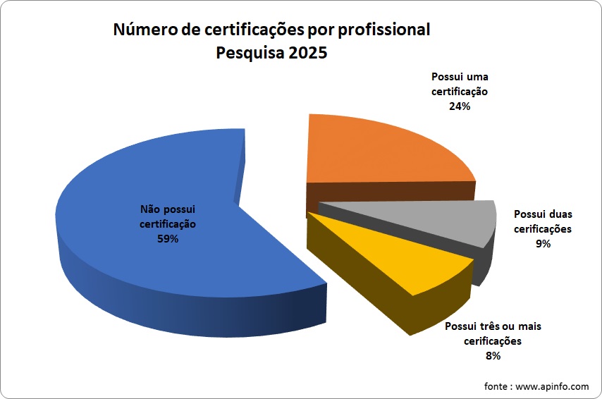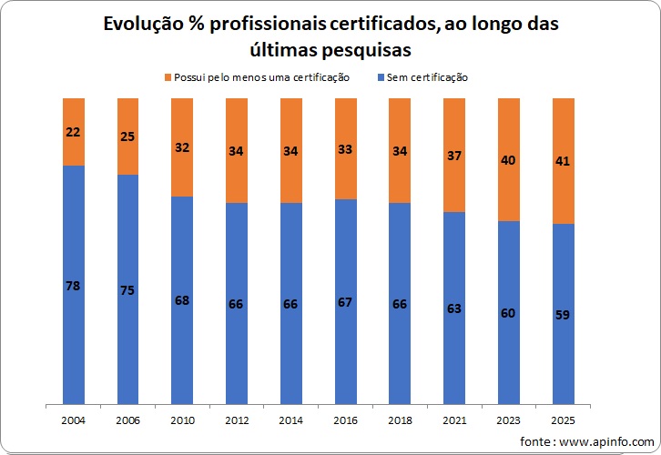 Em 2023, 10% possuiam três ou mais certificações, contra 8% em 2025.