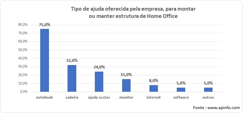 Obs :Dentre os profissionais que obtiveram algum tipo de ajuda, 75% receberam notebook da empresa