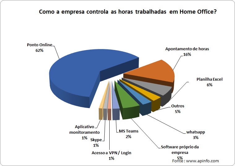 Obs :Dentre as empresas que fazem o controle das horas trabalhadas em home office, 62% optam pelo ponto eletrônico.
